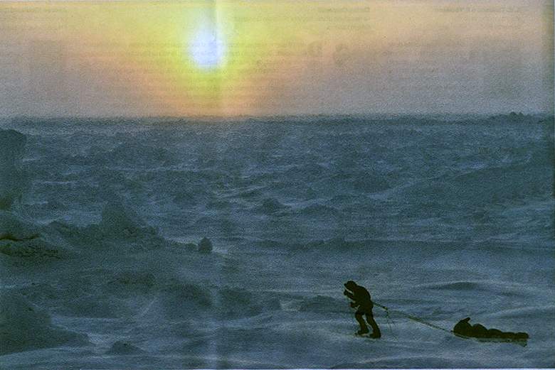 … Quando Borge e io raggiungemmo [a piedi] il Polo Nord, il giorno dopo il nostro arrivo passò casualmente sopra di noi un aereo da ricognizione.. i piloti rimasero stupiti quanto noi di vedere qualcuno. Spinti dalla compassione nei confronti di due esploratori polari accecati dalla fame, prima di proseguire il volo, ci gettarono un contenitore pieno di cibo.. avevamo bruciato quasi tutte le riserve corporee di grasso oltre alla massa muscolare… le nostre tappe potevano essere di diciassette ore. A volte non eravamo riusciti a dormire per via del freddo e della fame. Aprimmo la scatola con le provviste. Conteneva il pranzo dei piloti: panini, succo, sardine in scatola. Lo appoggiammo sui materassini e lo dividemmo tra di noi. Io avevo intenzione di trangugiarlo tutto in una volta, ma Borge suggerì di aspettare. Di osservare il cibo in silenzio. Contare lentamente fino a dieci prima di mangiarlo. Dimostrare una sobrietà comune. Ricordarci che star bene significa anche saper sacrificare qualcosa. Di rado mi sono sentito così ricco come allora..